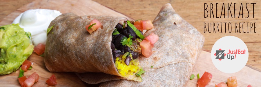 • Prepare burritos by spreading 1 tbsp of sour cream into the center of a tortilla. Add in eggs, cheese, tomatoes, and mushrooms, Roll the burrito while keeping it tucked and tight.